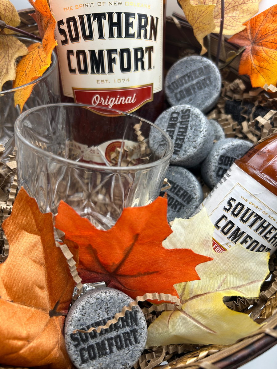Enjoy a refined sipping experience with this flavorful Southern Comfort set — perfect for whiskey enthusiasts or gifting. Includes: • Glassware: 2 Veecom crystal whiskey glasses • Accessories: 8 whiskey stones • Beverage & Flavor: Bottle of Southern Comfort and Southern Comfort Hot Sauce (Fruity Spiced Blend) • Basket Included – Ideal for gifting or display A stylish and tasty package for savoring classic flavors with a southern twist.