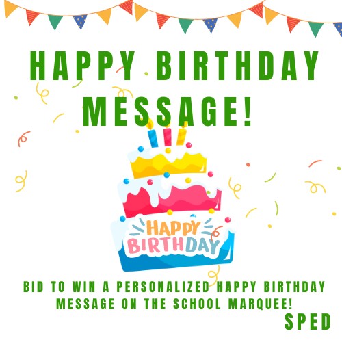 Get a special happy birthday message on the outside school marquee on your students birthday! (ONLY ONE STUDENT PER GRADE)
