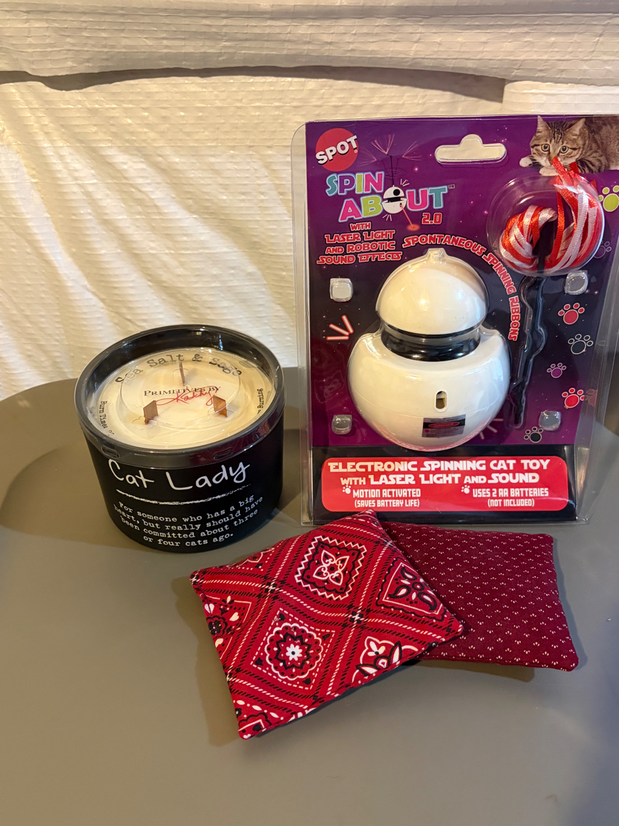Spin About Laser Light Toy, Cat Lady Candle and (2) Catnip Squares
