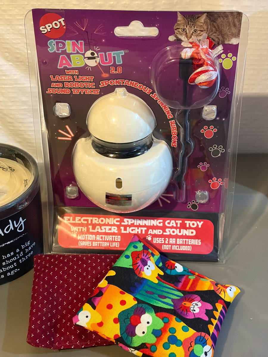 Spin About Laser Light Toy, Cat Lady Candle and (2) Catnip Squares