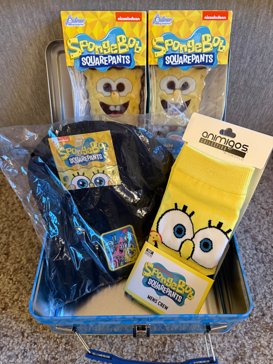 Do it up OLD SCHOOL with a classic SpongeBob metal lunch box!! * * ALSO INCLUDED * * * A pair of SpongeBob Crew Socks * Two (2) SpongeBob Chocolate Candies * SpongeBob Winter Cap
