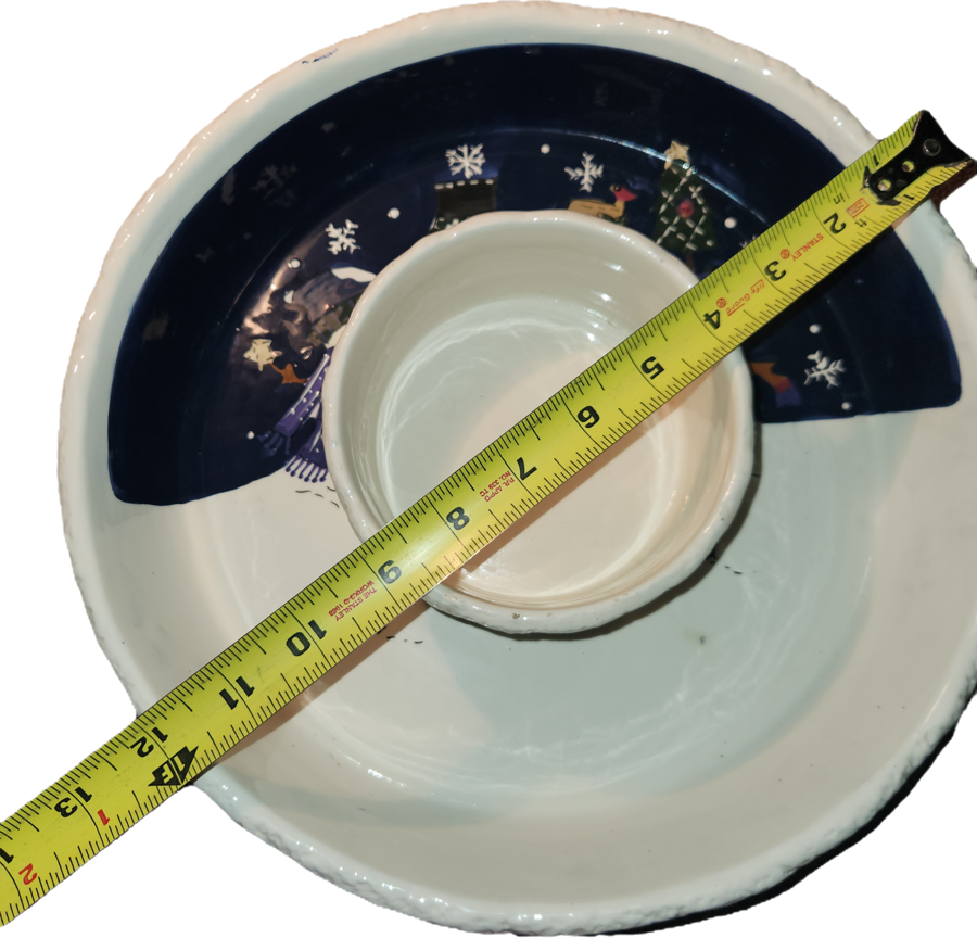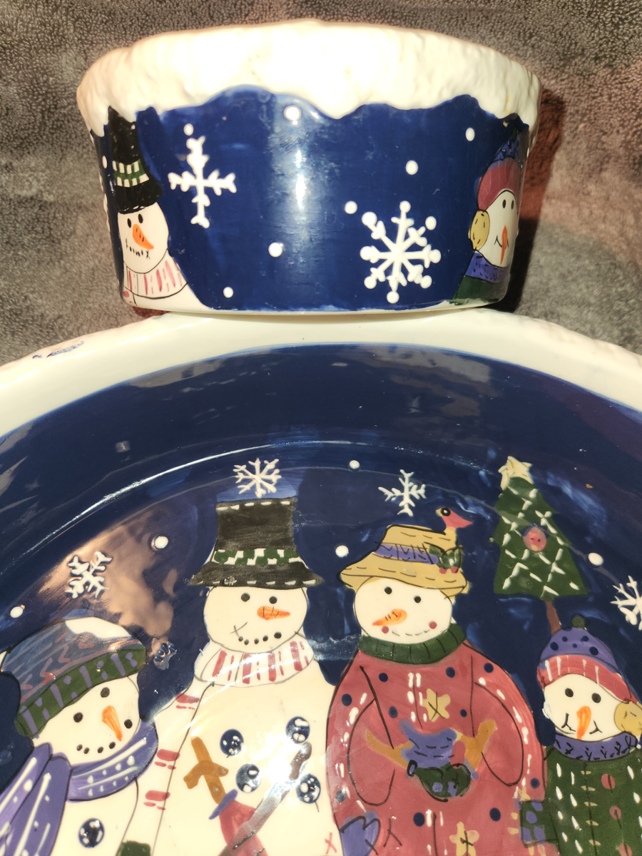 Serve up festive cheer with this charming chip and dip set from the beloved Snowfriends collection. Perfect for holiday gatherings, this piece brings both function and whimsy to your table. Details: - St. Nicholas Square Snowfriends Collection - Chip & dip serving set with cheerful snowman motif