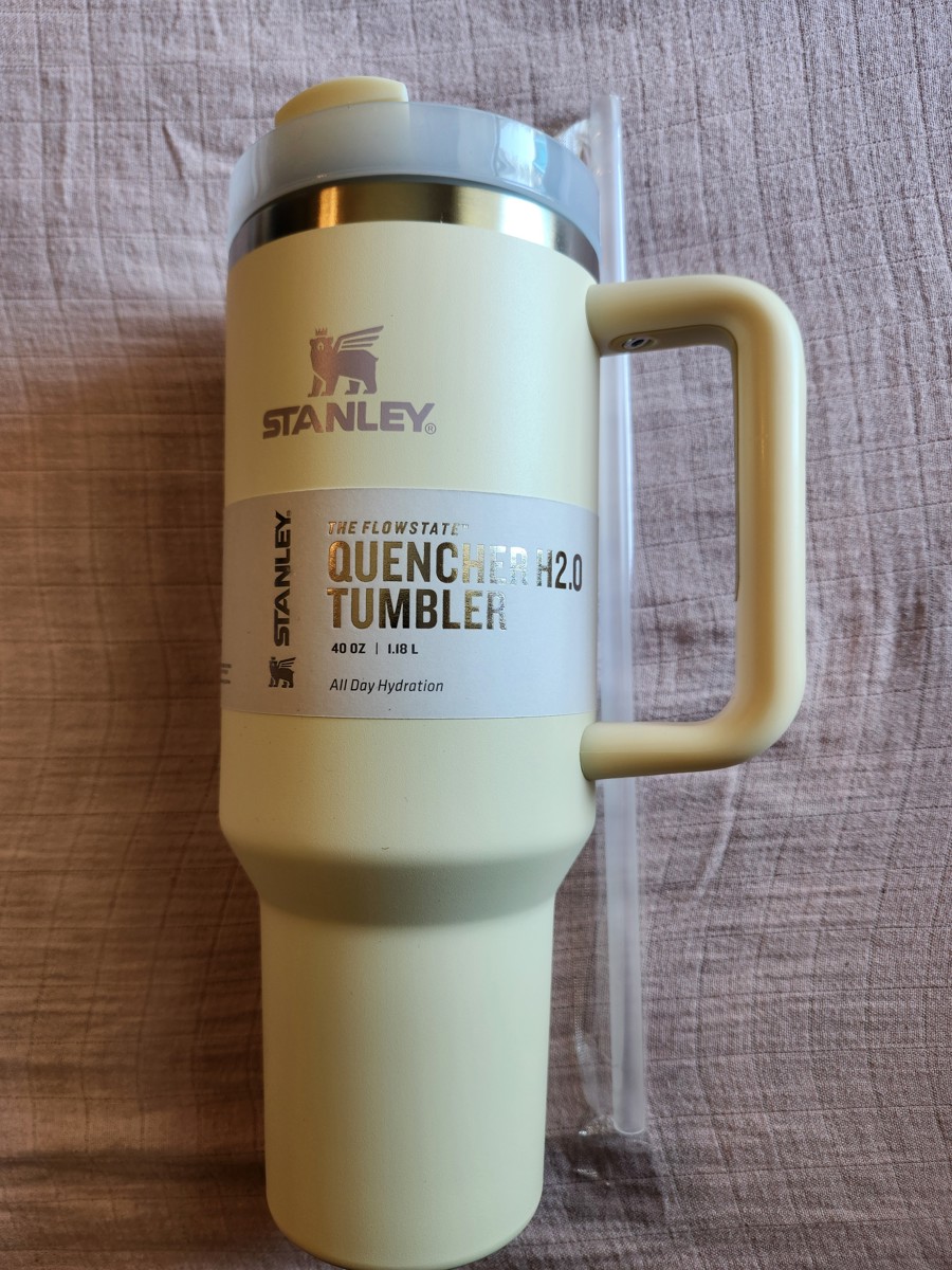 Cream Stanley Quencher H2.0 Tumbler (40 oz) This item will be mailed to the winner. Offering a whopping 40-ounce capacity and bomb-proof recycled stainless steel construction, the Stanley Quencher will be by your side every day. Reliable double-wall vacuum insulation keeps drinks hot or cold for hours. Made from 90% recycled, BPA-free 18/8 stainless steel. Double-wall vacuum insulation keeps drinks hot or cold for hours. Attractive powder coat finish. FlowState rotating lid has 3-positions: a straw opening, a drink opening and a full-cover top. Reusable straw. Ergonomic Comfort-grip handle.