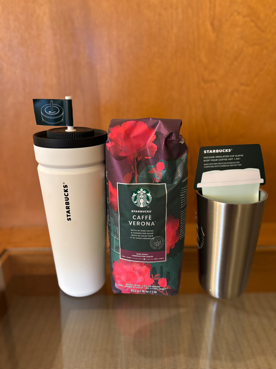 Starbucks gift pack including 1-16ounce coffee beans, 2 coffee mugs