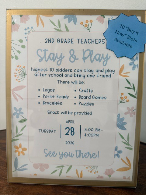 The first 10 people who pay $20 though the "Buy it Now" option will win a very special stay and play after school hosted by the second grade team. Each winner can bring one friend. Open to all grade levels! A snack will be provided. Activities include: Legos, Perler Beads, Bracelets, Crafts, Board Games, and Puzzles! 3-4pm April 28th at Parkway. Reach out to Ms. Curtis abby.curtis@gdrh.org with any questions.