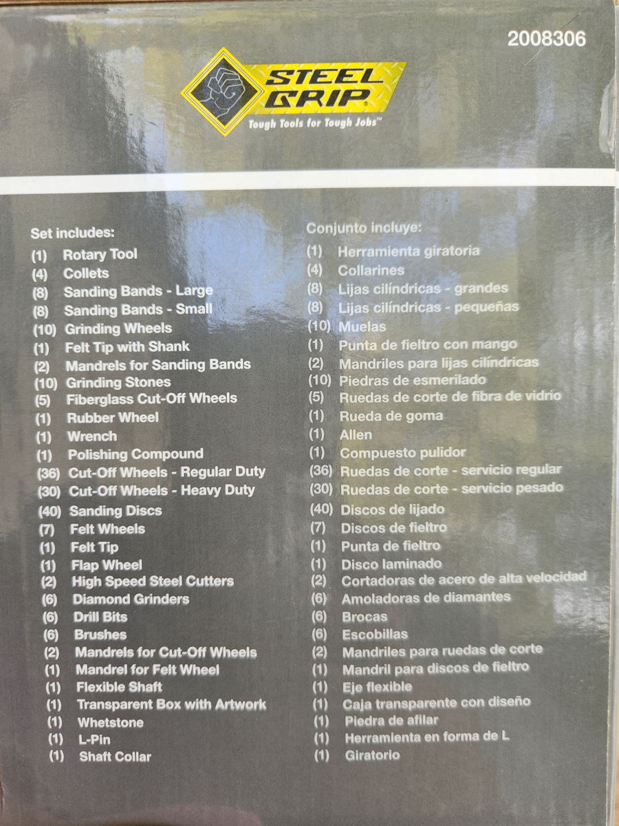 For the fixer, the maker, the tinkerer, and the holiday elf who prefers power tools to sugarplums! Whether you're crafting ornaments or tackling home repairs, this all-in-one rotary tool kit is ready to roll. Includes: - Steel Grip Rotary Tool Kit - 190 Accessories for sanding, grinding, polishing, carving, and more Donated by Ace Hardware – Shawnee (Quivira)