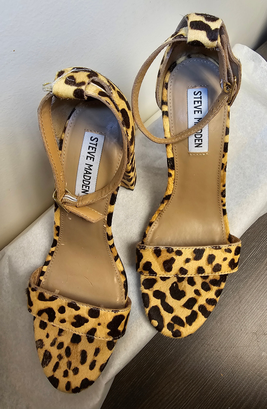 Steve Madden cheetah print heels made with ponyhair. The shoe is a medium width with an ankle strap fastening buckle with a 10 centimeter heel. They are in gently used condition. Note: Check photos see slight imperfections.