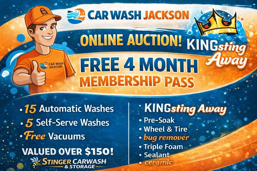 Keep your vehicle looking its best with a 4-Month King Sting Package from Stinger Car Wash in Jackson.