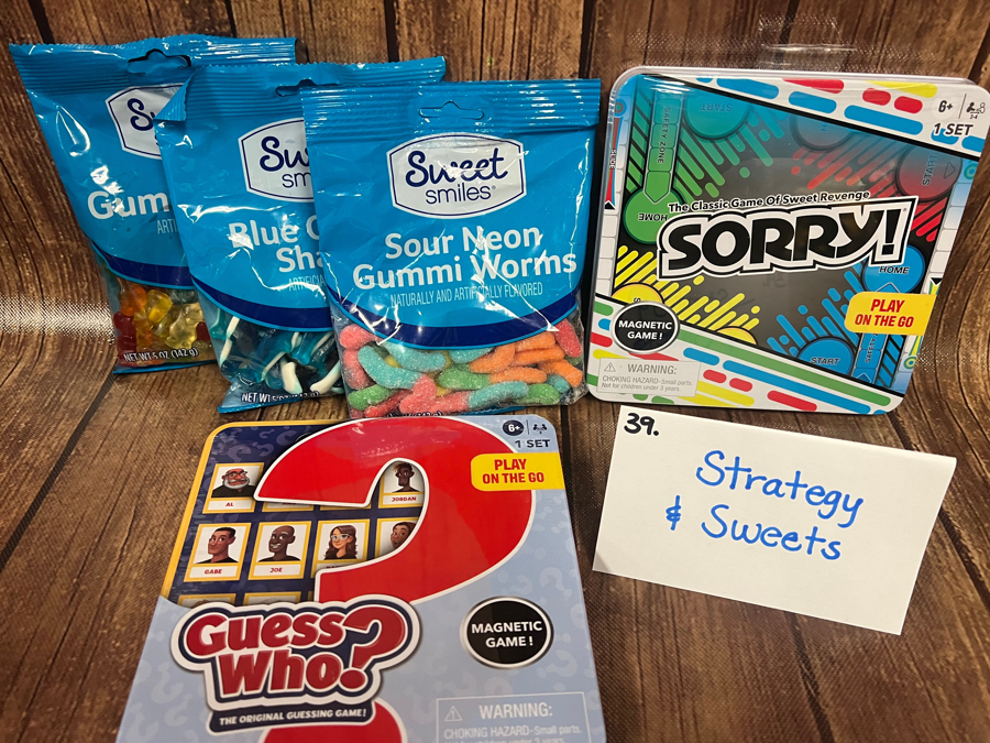 2 travel games: Sorry and Guess Who 3 bags gummy candy