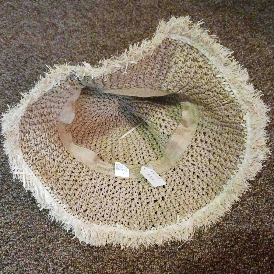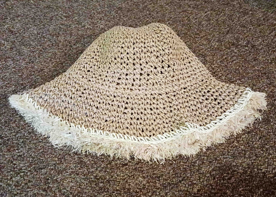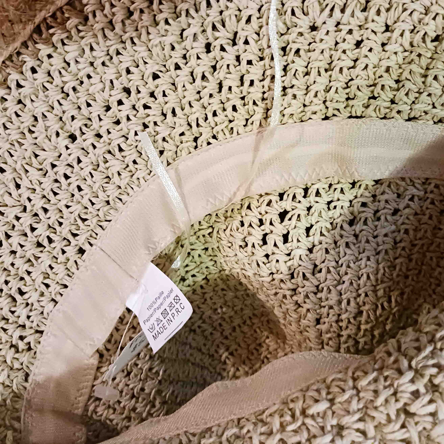 Packable, paper straw bucket hat. This is a great, versatile sun hat! This hat can be moulded into different shapes and styles. One size fits all. There is lace inside the brim that can be tightened to fit snugly on your head.