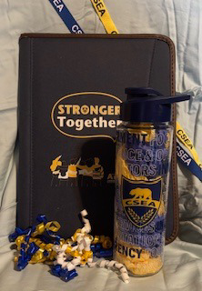CSEA Zip Up padfolio with notepad, pen, and water bottle.