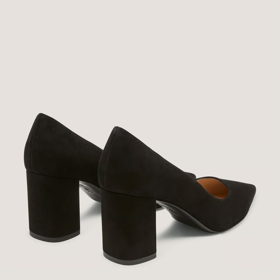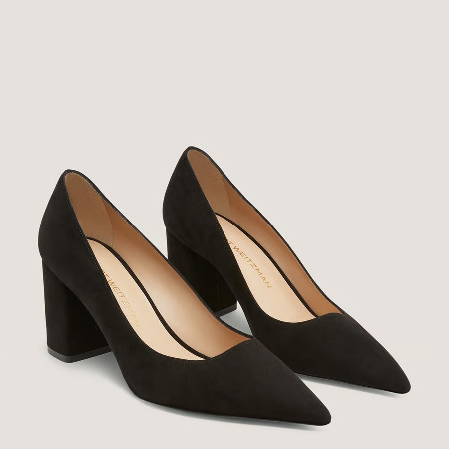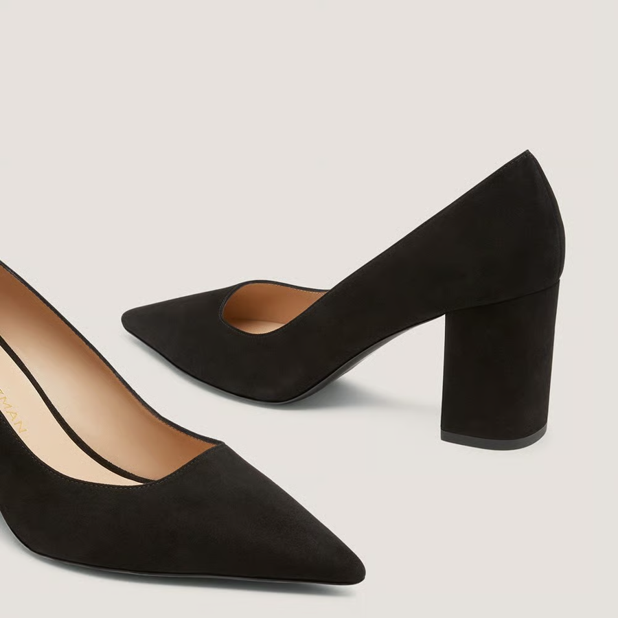 A stylish pair of black suede pumps, in size 8, from designer Stuart Weitzman