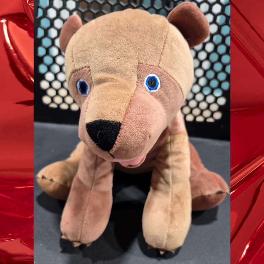 9.5" stuffed dog toy with squeaker. Velveteen fabric.