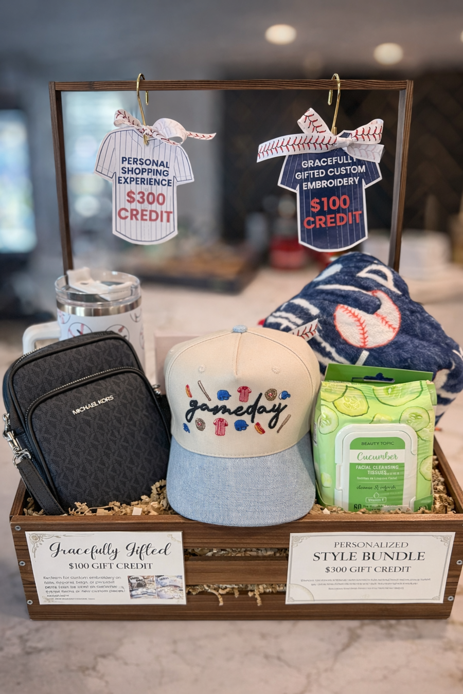 Use this credit for personalized embroidery on apparel, accessories, or gifts from Gracefully Gifted.