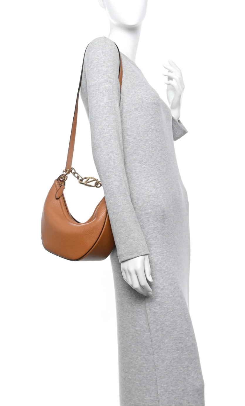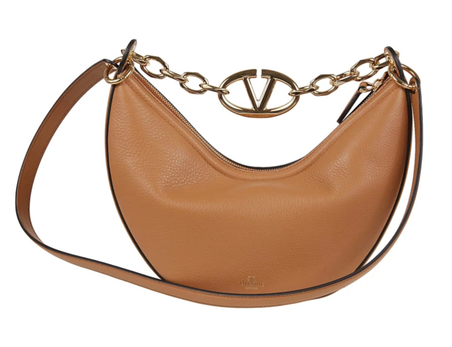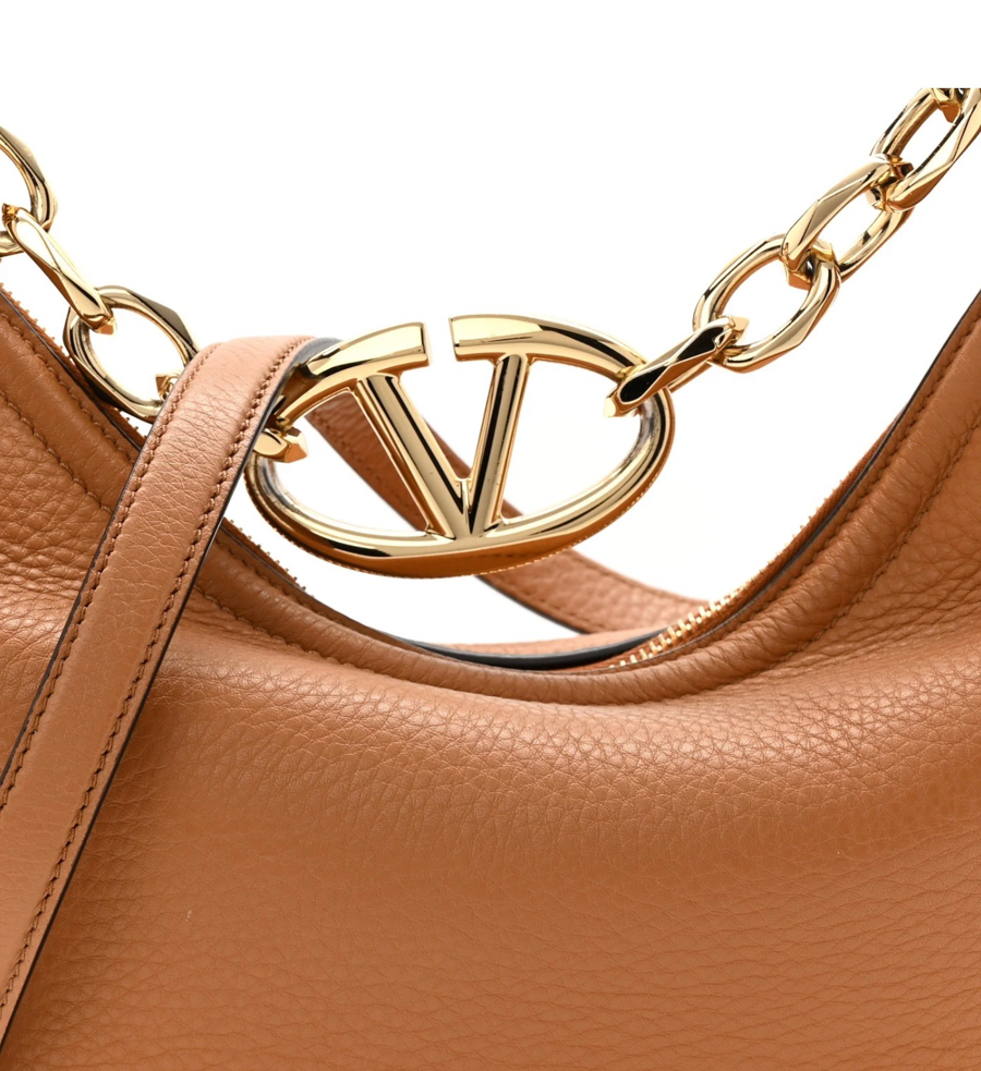 LOVING THIS VALENTINO GARAVANI VLOGO MOON BAG!! WITH BEAUTIFUL VLOGO CHAIN STRAP & LEATHER STRAP THIS VERSATILE BAG WITH ZIP CLOSURE, INTERIOR SLIP POCKET IS YOUR GO-TO BAG!! DIMENSIONS ARE APPROXIMATE.
