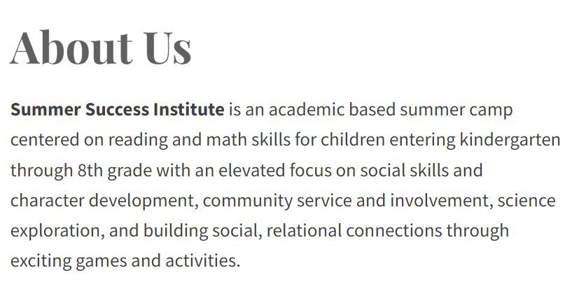 Summer will be here before you know it! Get your student ready with 1 week of your choice (upon availability) at the Summer Success Institute in the summer of 2026! $459 value. Summer Success Institute is an academic centered summer camp for children entering kindergarten through 8th grade with an elevated focus on community service & involvement, social skills and character enrichment, and building confidence and connections through summer social fun! Academic momentum will continue this summer as your child will be working with some of the BEST teachers in the county to propel them forward and give them the confidence they deserve to tackle next year's curriculum. Kiddos will be amazed with the weekly hands-on science exploration, daily community involvement projects, social skills and values encouragement, as well as summer social activities and games with their friends.