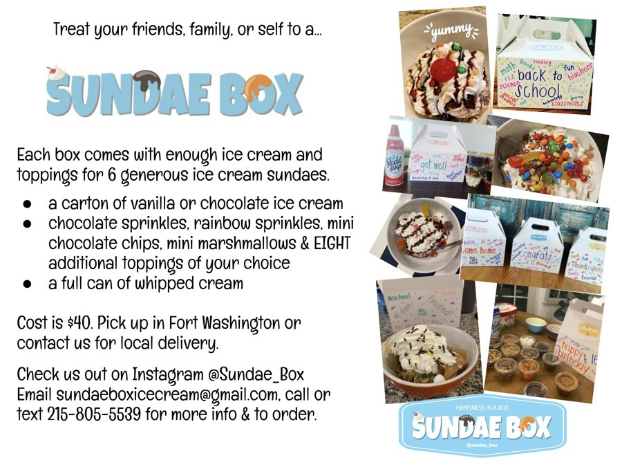 Bid to win a Sundae Box that has enough ice cream and toppings for 6 generous ice cream sundaes! These boxes include; a carton of vanilla or chocolate ice cream, chocolate sprinkles, rainbow sprinkles, mini chocolate chips, mini marshmallows, eight additional toppings of your choice, and a full can of whipped cream! Thank you so much for your generous donation and see more on Facebook or Instagram!!