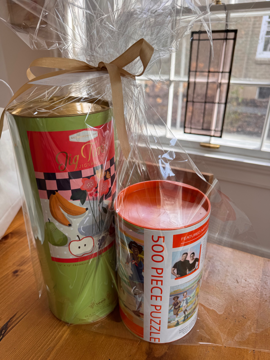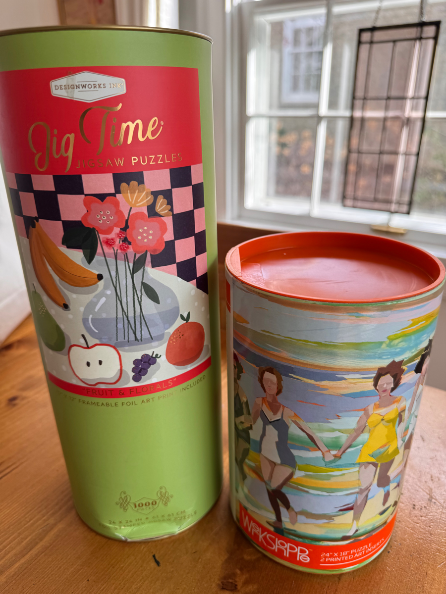 Thank you to Flowers on Vine for donating these beautiful puzzles. In this bundle find a Werkshoppe puzzle by Signe & Gonna Grushovenko Sunset Swim and a Design Works Ink Jig Time, Fruits and Florals 1000 pieces, Foil stamped jigsaw puzzle. Thank you Flowers on Vine!