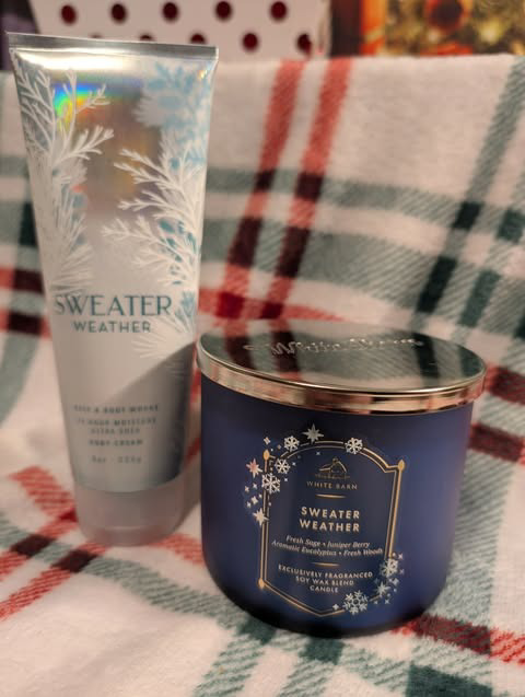 ❄️🧣 Sweater Weather 🧣❄️ Embrace the cozy vibes of the season with the Sweater Weather Christmas auction bundle! This chic and comforting collection is perfect for gifting—or keeping for yourself—to create the ultimate cozy, stylish, and festive experience. ✨ What’s Included: 🧢 Rebecca Minkoff Beanie & Arm Warmers – Stay warm in style with this fashionable matching set, perfect for chilly winter days. 🕯️ White Barn Sweater Weather 3-Wick Candle – Fill your home with this comforting aroma 🛁 Bath & Body Works Sweater Weather Body Cream – Wrap yourself in soft, seasonal fragrance and moisturized skin. 🌸 Dolce & Gabbana Light Blue Perfume – A fresh, light scent that adds a touch of elegance to your winter wardrobe. 🧦 Nutcracker Super Soft Crew Socks – Keep toes toasty and cozy during long winter nights or festive mornings. ✨ From fashion to fragrance to festive comfort, Sweater Weather is your all-in-one bundle for stylish warmth and seasonal luxury. Perfect for holiday gifting—or treating yourself to a little winter magic! 🎁❄️