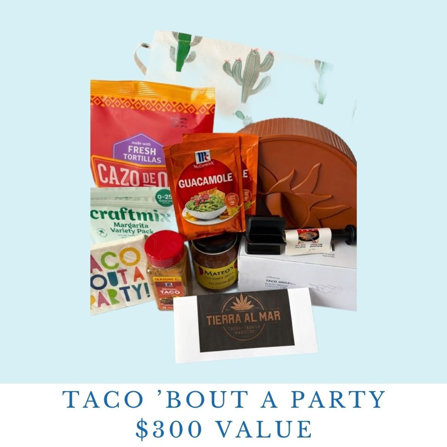 Taco Night & Fiesta Out Package — Double the Flavor, Double the Fun! Bring the fiesta home and enjoy a night out, too! This fun and festive package includes everything you need to host the perfect taco night in your own kitchen, plus a generous gift card to enjoy an authentic Mexican dinner at Tierra Al Mar. This fiesta-ready bundle includes: Dinner Out Experience 200 Tierra Al Mar Gift Card — enjoy authentic Mexican cuisine and a night out, Taco Night at Home Essentials: Tortilla Warmer — keep tortillas warm and ready, Taco Holders — easily build and serve tacos, Taco Seasoning — bold, classic taco flavor, Guacamole Mix — fresh and easy guacamole, Chips and Salsas — perfect taco night sides. Fiesta Extras: Margarita Mix — mix up refreshing margaritas, Taco Party Napkins — festive taco-themed napkins, Meat Chopper — cook and crumble meat with ease. Perfect for: Taco lovers, families, and anyone who enjoys fun dinners and great local restaurants.Host your own taco fiesta at home and enjoy a delicious night out, too!