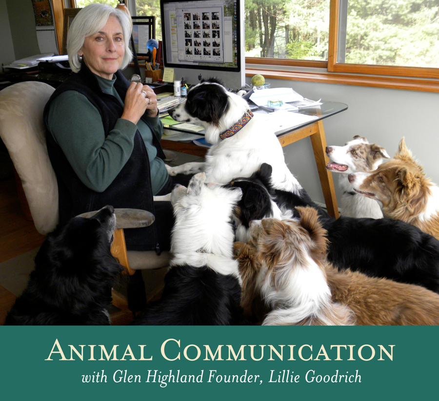 Lillie Goodrich developed her skills over 25 years helping rescue Border Collies and working with clients with all kinds of animals - horses, cats, and birds - they all have something to say! She co-founded Glen Highland Farm and began trusting her natural gift as she wanted to help dogs find their way more easily, being understood in an emotional way, not just a behavioral way.