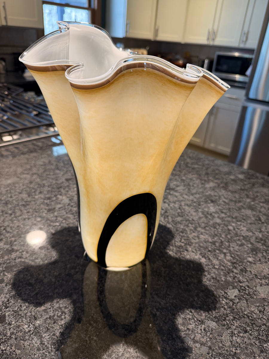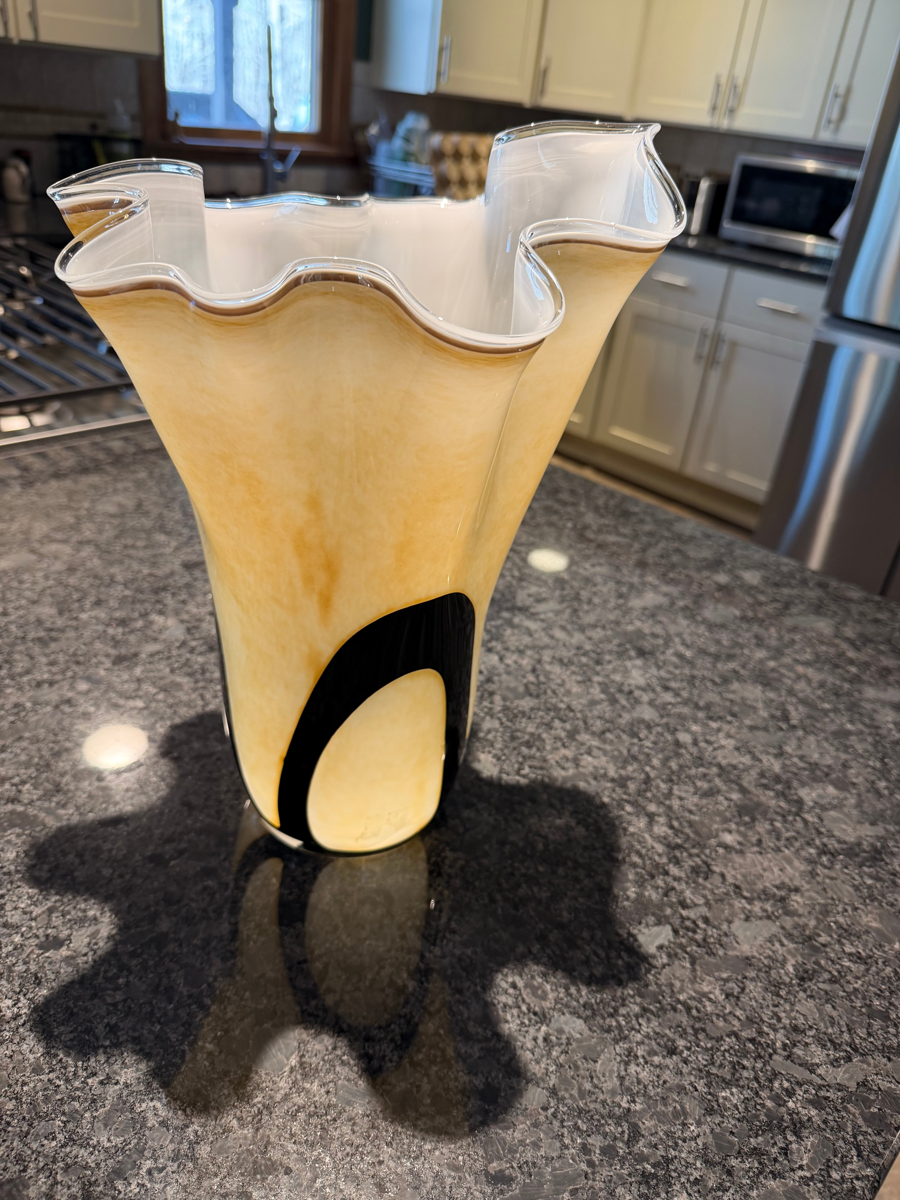 Tan and Black Glass vase 6" wide x 14" tall