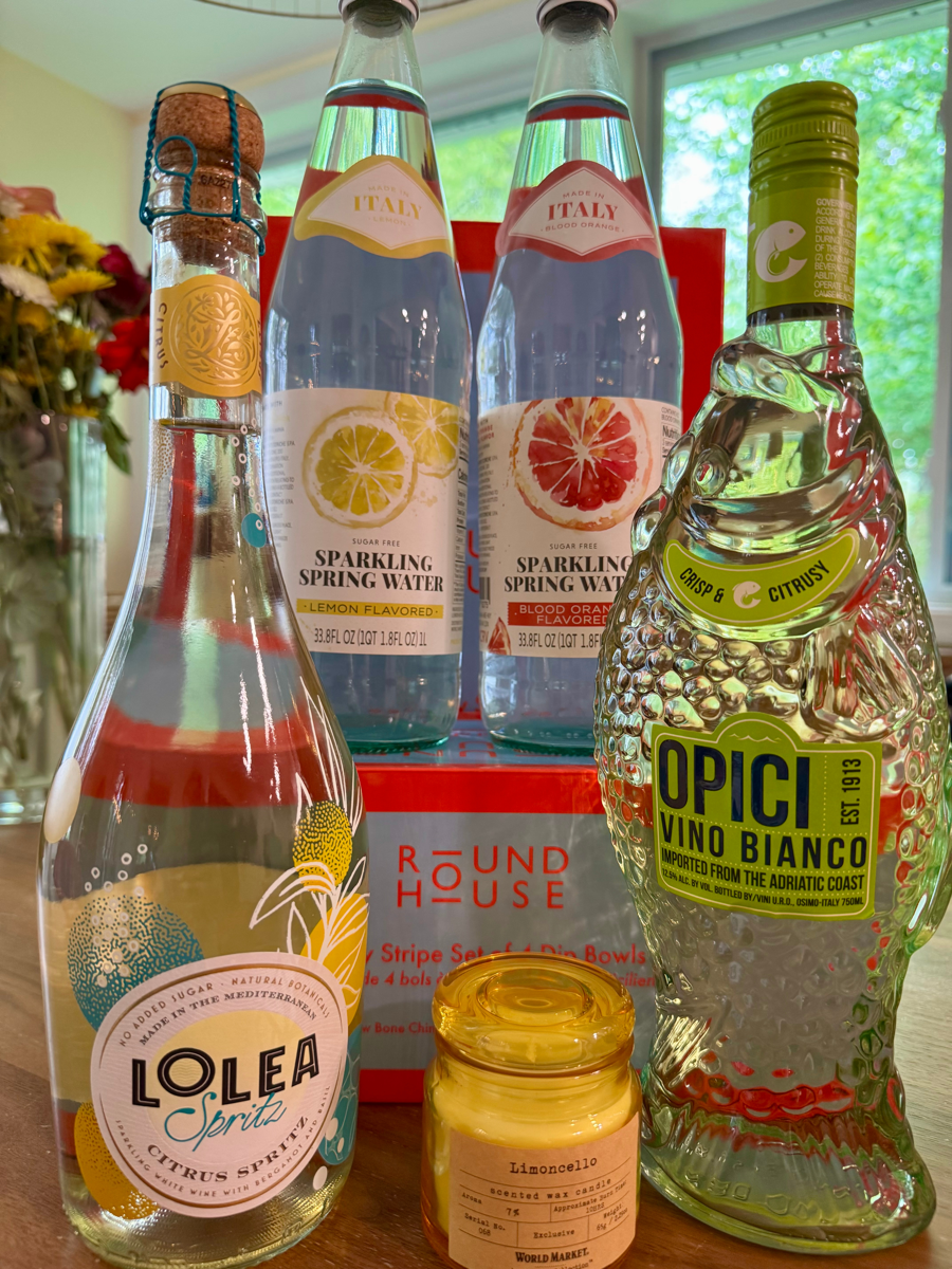 "Bring the flavors of Southern Italy to your table with this thoughtfully curated collection of pantry staples, serving pieces, and aperitivo essentials. Perfect for a cozy night in or effortless entertaining, this basket includes artisan pasta, pesto, premium olive oil, and balsamic vinegar, along with Italian sparkling beverages and—hailing from the Adriatic Coast—a Lolea Citrus Spritz and a charming Opici Vino Bianco “fish bottle.” Sweet finishing touches include chocolate almond biscotti and a limoncello mini candle.