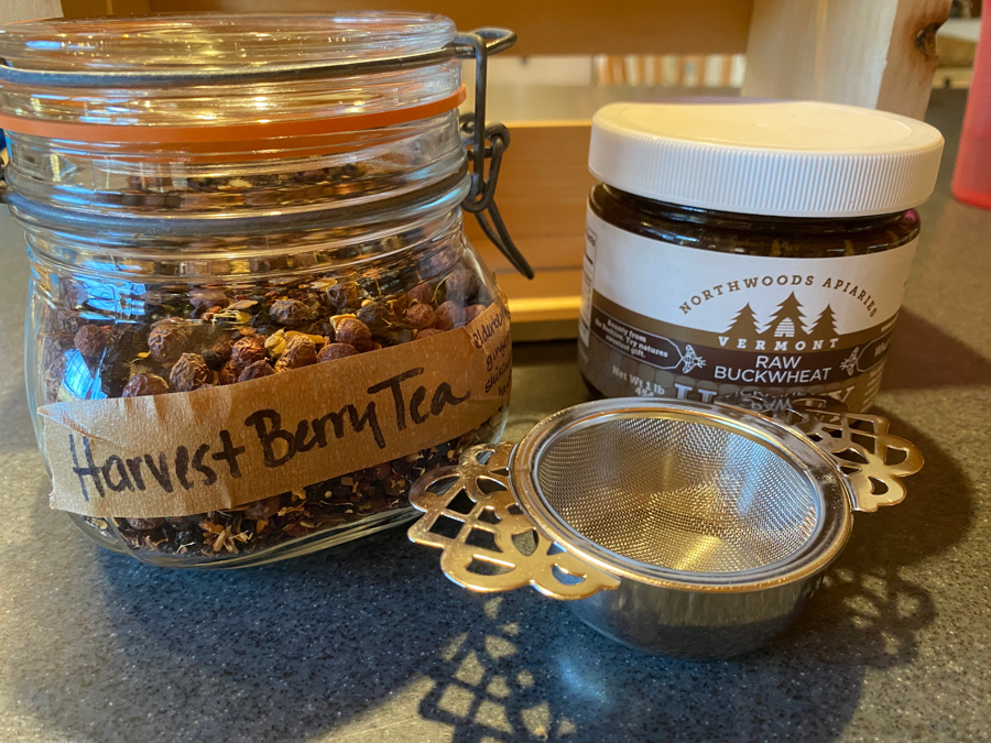 Rachel Guaraldi has put together this little basket of homemade tea, complete with strainer.