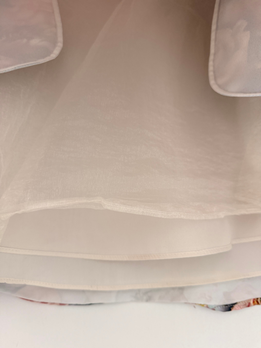 This Ted Baker Larinda floral skirt features a colorful botanical print and a structured A-line shape. It closes on the side and features a tulle lining to give it the perfect volume. This is the perfect addition to your spring/summer wardrobe. Weddings or evenings out, you will be stunning in it!