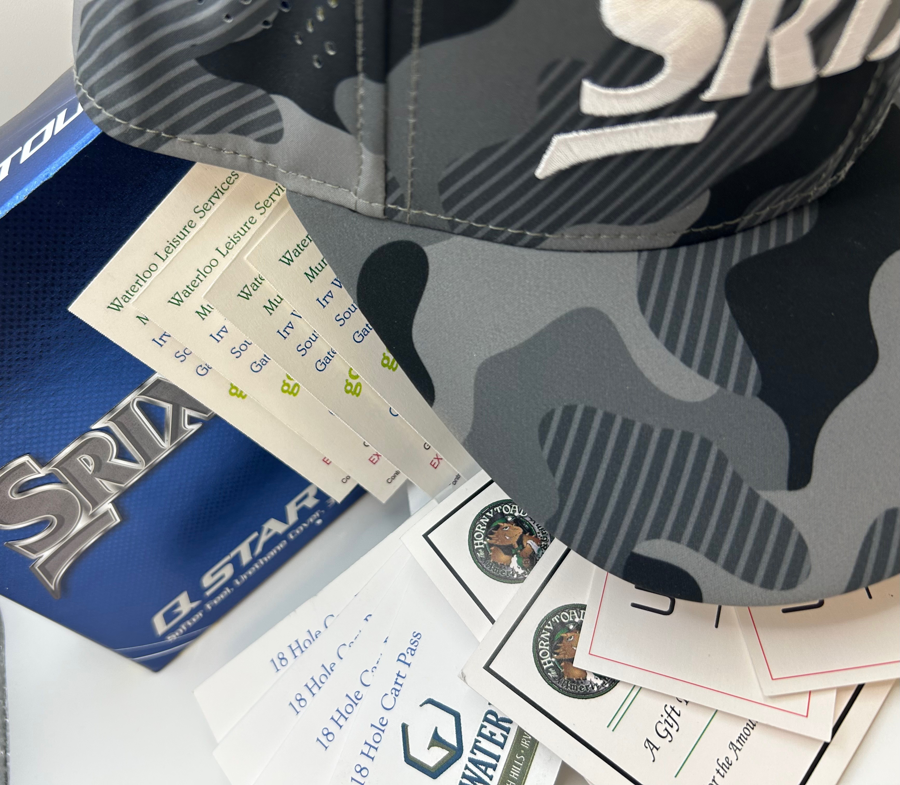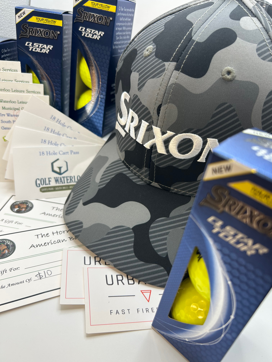 Hit the links and enjoy a day of golf and goodies with this all-in-one golf package: • Four rounds of 18-hole golf with cart rentals – perfect for friends or family • $20 gift card to The Horny Toad American Bar & Grill – relax and refuel after your game • Free dessert and garlic Twisters at Urban Pie – a tasty treat to celebrate your wins • One dozen Srixon Q-Star Tour golf balls – perform your best on the course • Srixon golf hat – stylish and practical for sunny days A complete package for golf enthusiasts who love fun, food, and flair on and off the course.