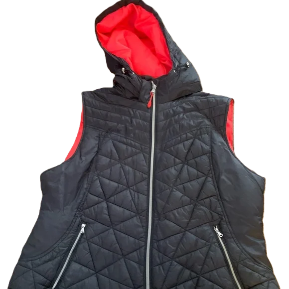 Tek Gear Puffer Vest XL Black orange red interior with hood Vintage
