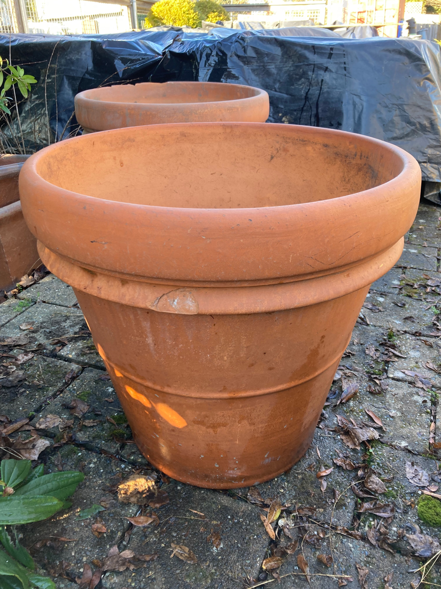 Traditional Italian terra cotta, low fire clay, some frost spalling but no cracking.