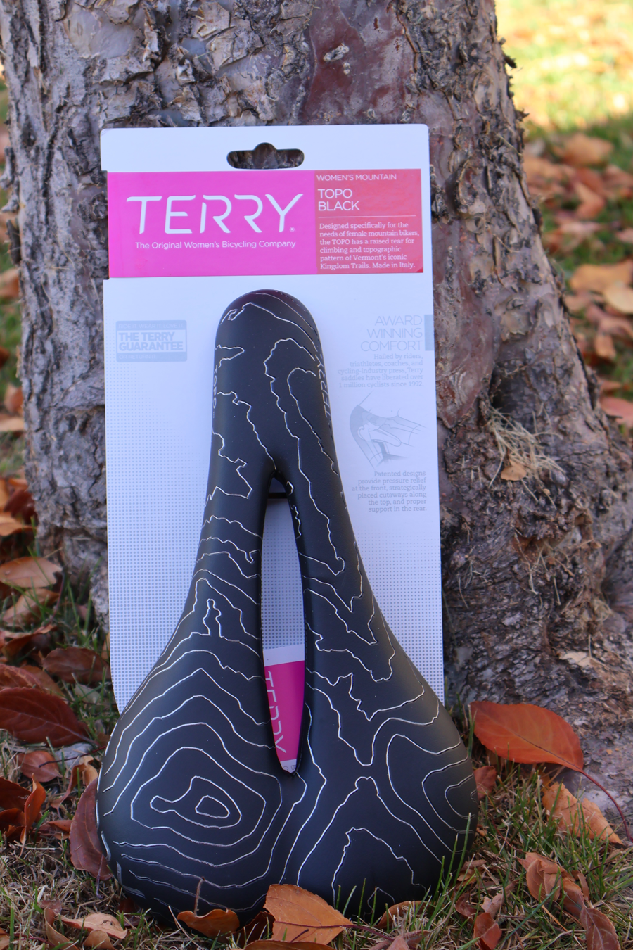 Our Topo mountain bike saddle for women takes everything we've learned about saddle comfort and tailors it to the specific needs of female mountain bikers. It's a sleek, low profile design with a narrower-shaped, flat rear platform that aids in your climbing performance and quick rear dismounts. The center has one of our widest cutaways to increase comfort and eliminate pressure points. And what really defines Topo is the use of durable, Fibra-tek with debossed topographic map of Vermont's Kingdom Trails. Made by hand in Italy.