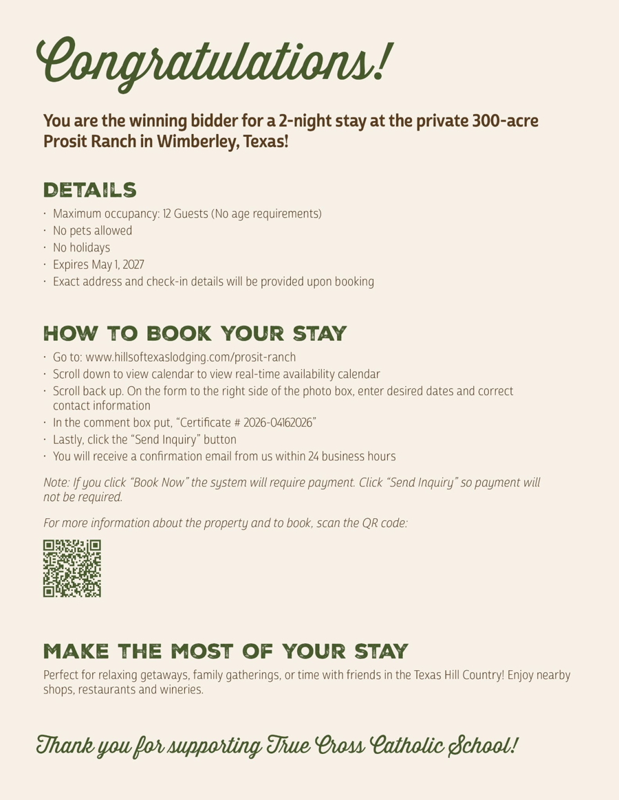 Founded in 1946 as the first parochial school on the Galveston County Mainland, True Cross Catholic School has been forming students in faith and academics for nearly 80 years. As a nonprofit ministry, funds raised through this event directly support our teachers, classrooms, and the programs that make our mission possible every day.