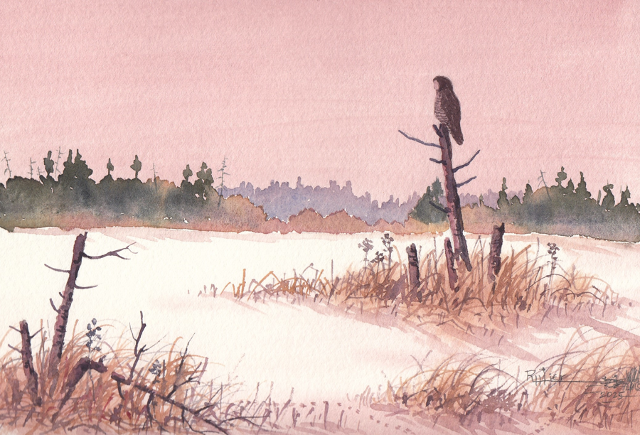 Artist statement: Another year of fun painting for The Tiny Bird Art Auction! Winter scenes are so grand to paint with watercolors