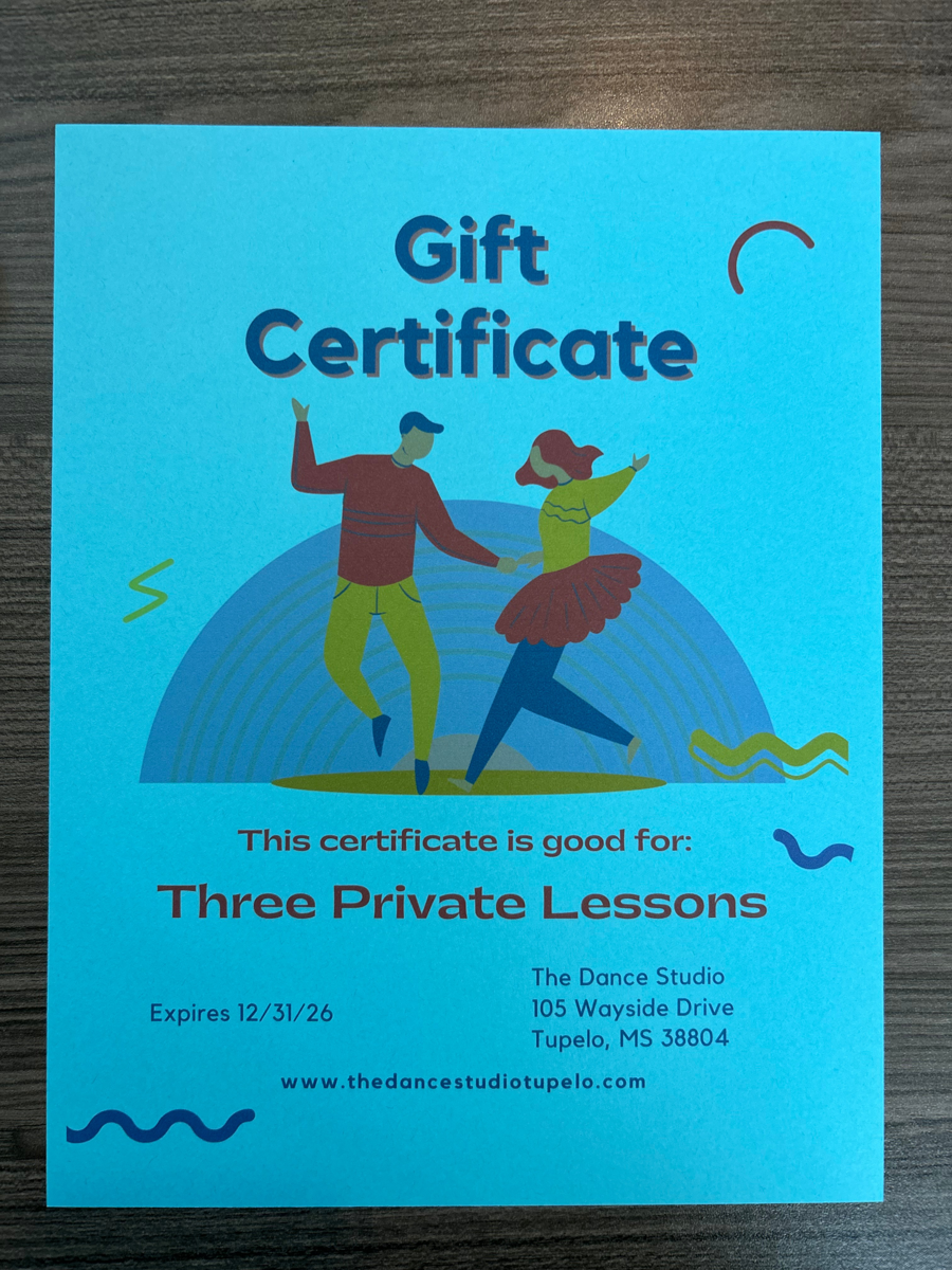 The Dance Studio Tupelo Gift Certificate - 3 Private Lessons