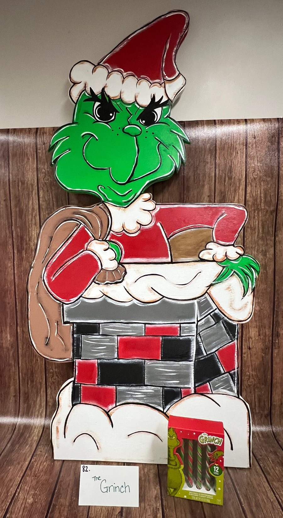 Yard decor- handmade wooden Grinch, 48” tall, 23” wide Grinch candy canes