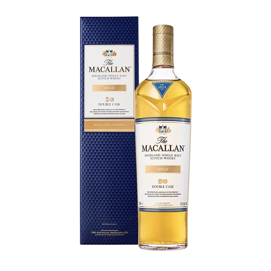 An intriguing single malt that celebrates the coming together of two styles, Double Cask Gold reflects a perfect harmony of flavours and natural colour. The perfect partnership of American and European Oloroso sherry seasoned oak casks creates this burnished gold whisky with a distinctive character, that leads with American oak style before giving way to classic Macallan flavours.