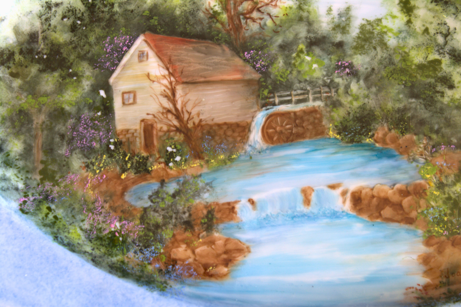 Artist: Joan Walker. "Porcelain painting - plate is a Germany Hutchenruether Sylvia 1814 with artist hand painting." 15 x 10 inch platter.