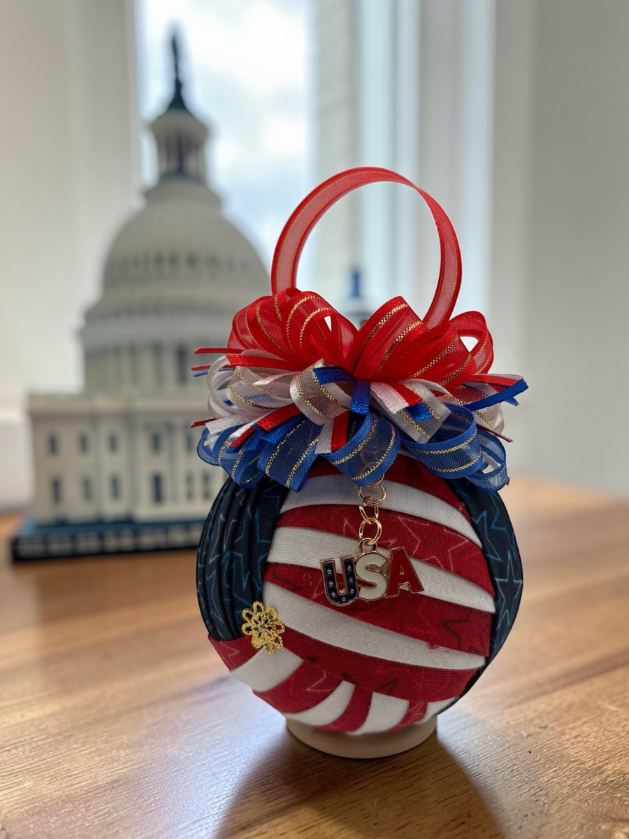 A beautiful fusion of tradition and patriotism! This handmade ornament is more than just a decoration—it’s a collector’s item. Whether you are honoring a veteran, celebrating a holiday, or simply showing your love for the USA, this intricate piece brings a touch of handmade elegance to any space.