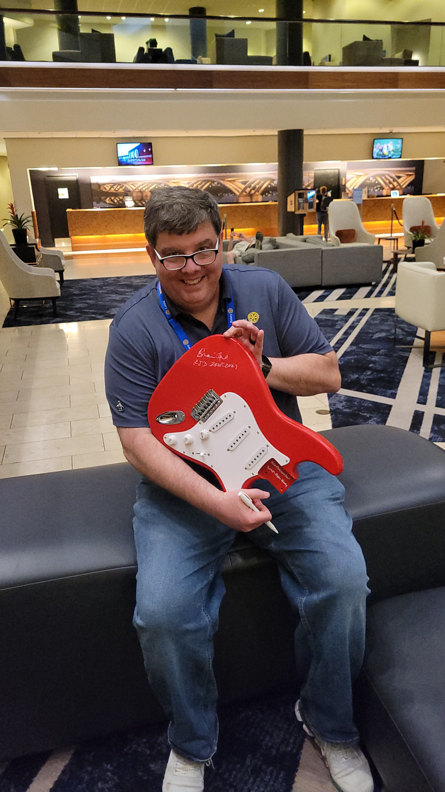 Rotary District 6560 is striking a new chord in fundraising with the auction of two custom-built guitars — created by District Governor Ryan Henry himself. These unique instruments are not only a labor of love, but also a bold statement of Rotary’s commitment to doing good in the world. One guitar, painted red, will benefit PolioPlus, continuing Rotary’s decades-long fight to eradicate polio worldwide. The second guitar, painted blue, will support the Annual Fund, ensuring even more life-changing service projects take place right here in Central Indiana and around the globe. “Ever since I built my first bass guitar in 2018, I was looking for an opportunity to build another,” said Henry. “A few months ago, I was thinking of a unique way to raise money for The Rotary Foundation. I realized that my passion for Rotary and interest in music could come together, creating a fun way to not only raise money, but also generate an opportunity to get Rotary in front of more eyes.” Adding to their significance, during this year’s Zones 30 & 31 Institute in Columbus, Ohio, several past Rotary International Presidents and Directors signed the guitars — making them true collector’s pieces that embody the spirit of Service Above Self.