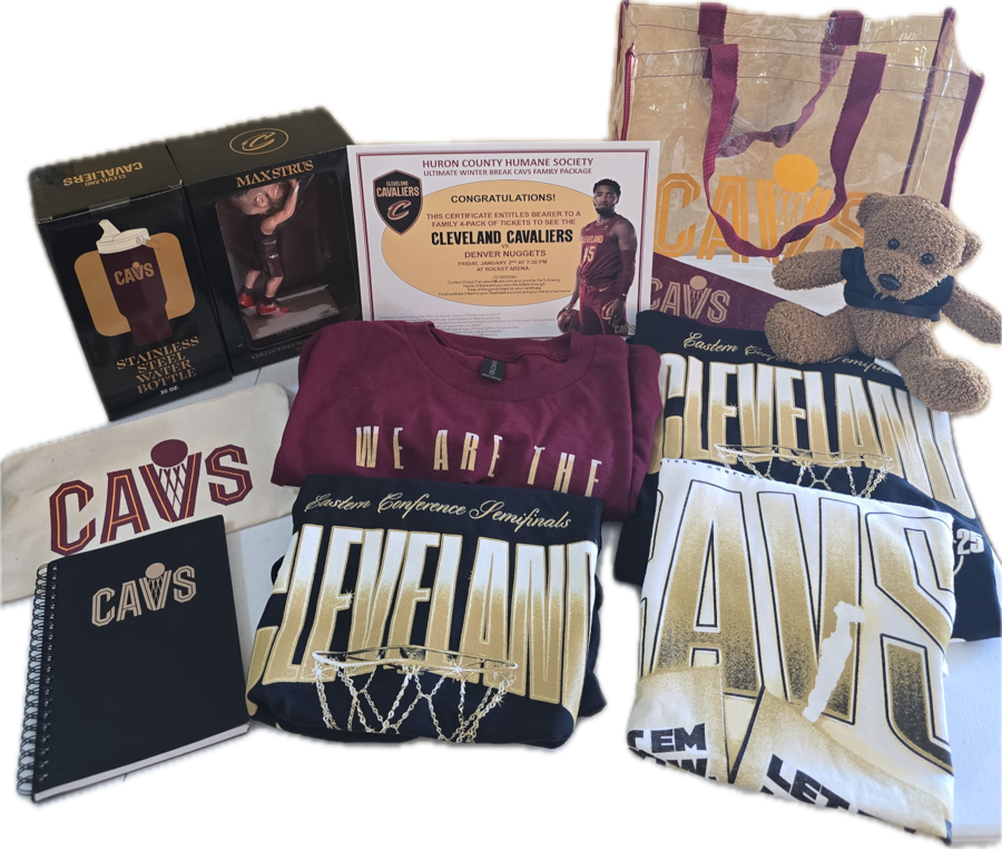 LIVE AUCTION ITEM Experience the excitement of an unforgettable game night with "The Real Deal" auction item! You will receive 4 tickets to see the Cleveland Cavaliers take on the Denver Nuggets on January 2 at the Rocket Mortgage Fieldhouse. This incredible package also includes a fantastic basket filled with exclusive Cleveland Cavaliers merchandise. You'll find a collectible bobblehead, a stylish water bottle, and vibrant Cavs t-shirts to show off your team spirit. Additionally, the package features a charming pendant, a cuddly teddy bear, a convenient bag, and a Cavs notebook for all your notes and game day memories. Don't miss your chance to enjoy an amazing night of basketball and fun with this all-in-one Cavaliers experience!