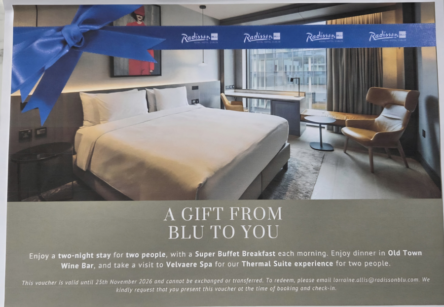 Radisson Blu Royal Hotel, Dublin City Centre 2 nights B&B + 1D for 2 people, plus visit to Velvaere Spa Thermal Suite, Value €700