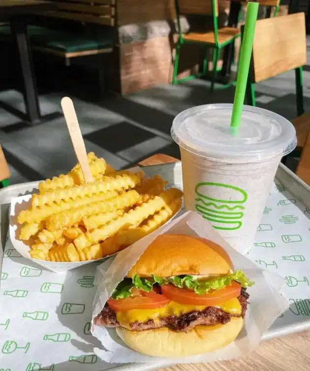 Shake Shack is a high-quality fast-food restaurant that uses premium ingredients, specifically a proprietary 100% Angus beef blend (sirloin, brisket, short rib) from that is never frozen. The "smash" technique creates a caramelized crust, while the fresh potato bun, secret sauce, and simple, precise seasoning deliver a consistently juicy, flavorful, and elevated fast-casual experience.