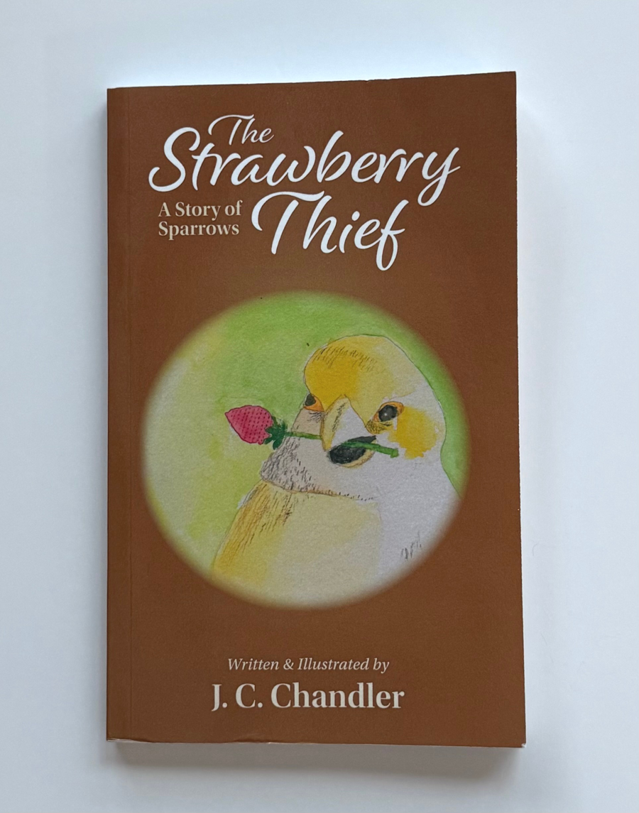 When their home is threatened by men clearing land for a strawberry patch, two sparrows enlist the aid of others to save their home. For middle school ages. Donated, inscribed and signed by the author, J.C. Chandler
