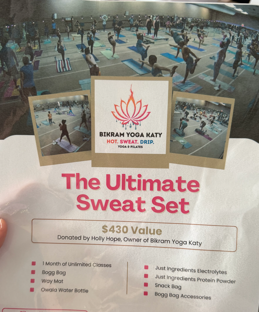 This wellness and yoga bundle includes 1 month of unlimited yoga classes, a Bogg bag with accessories, a Way Mat, an Owala water bottle, Just Ingredients electrolytes and protein powder, and a snack bag—everything you need to stay active, hydrated, and energized.