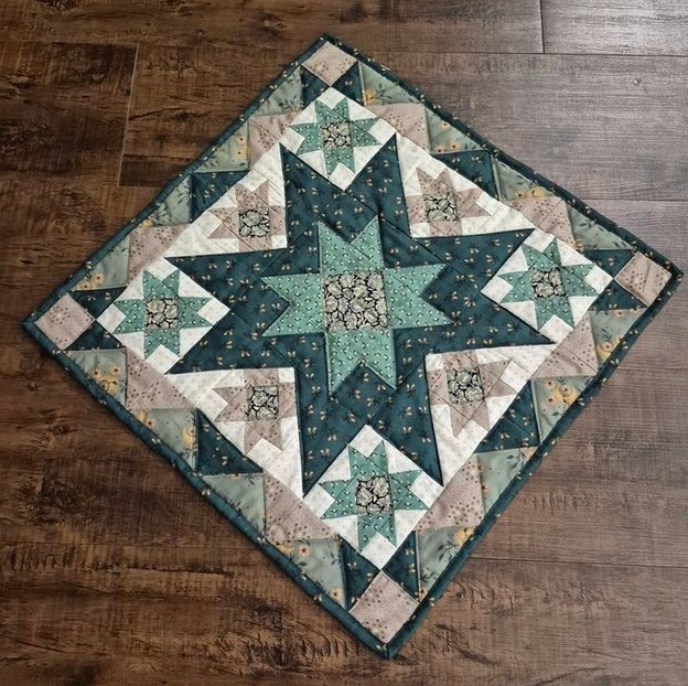Bring a touch of woodland magic to your home with this charming square table topper. Measuring 20.5" square, it features forest-inspired green tones accented with hints of tan, delicate florals, and playful peekaboo moons in a subtle starry theme. Created with care and creativity, it’s the perfect accent for any table. This piece comes from Thread & Paper, the ultimate destination for quilting, knitting, and crocheting. Their vast store is packed with fabrics, yarns, tools, and even classes—everything a maker could wish for!