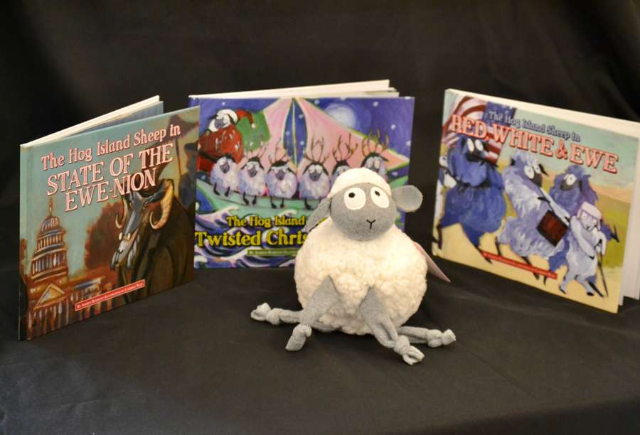 Three BIC Hog Island Sheep Children's Books and Stuffed Sheep