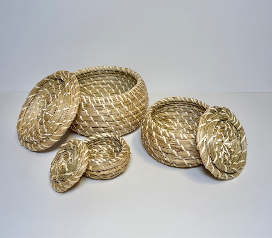 Three Sweetgrass Baskets with Lids