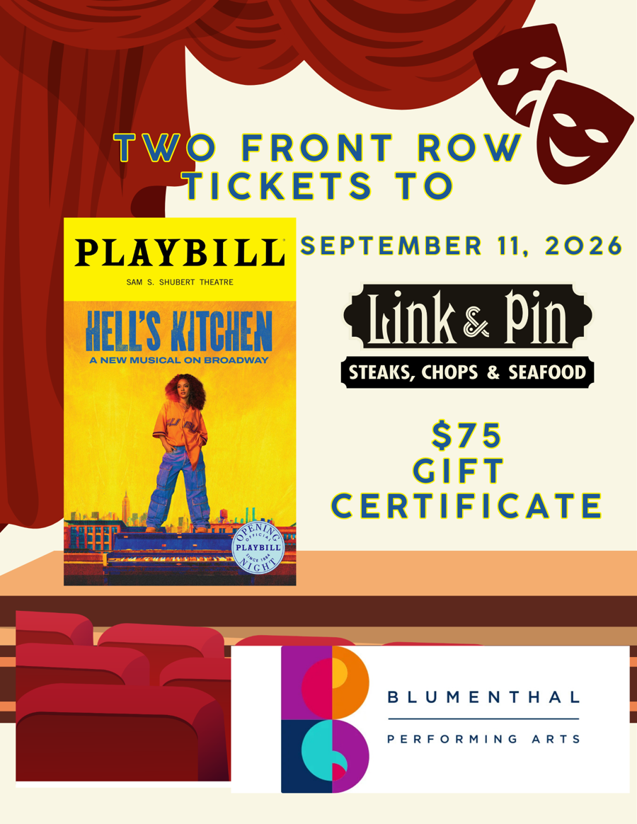 Experience an unforgettable night out with two tickets to the sensational Hell's Kitchen play, taking place in the front row at the prestigious Belk Theater, with parking pass, located within the Blumenthal Performing Arts Center on September 11, 2026. To make your evening even more special, enjoy a $75 gift card for a delightful dinner at Link & Pin, where you can choose between their Huntersville or Arboretum locations. Don't miss this chance to indulge in a night filled with entertainment and exquisite dining!